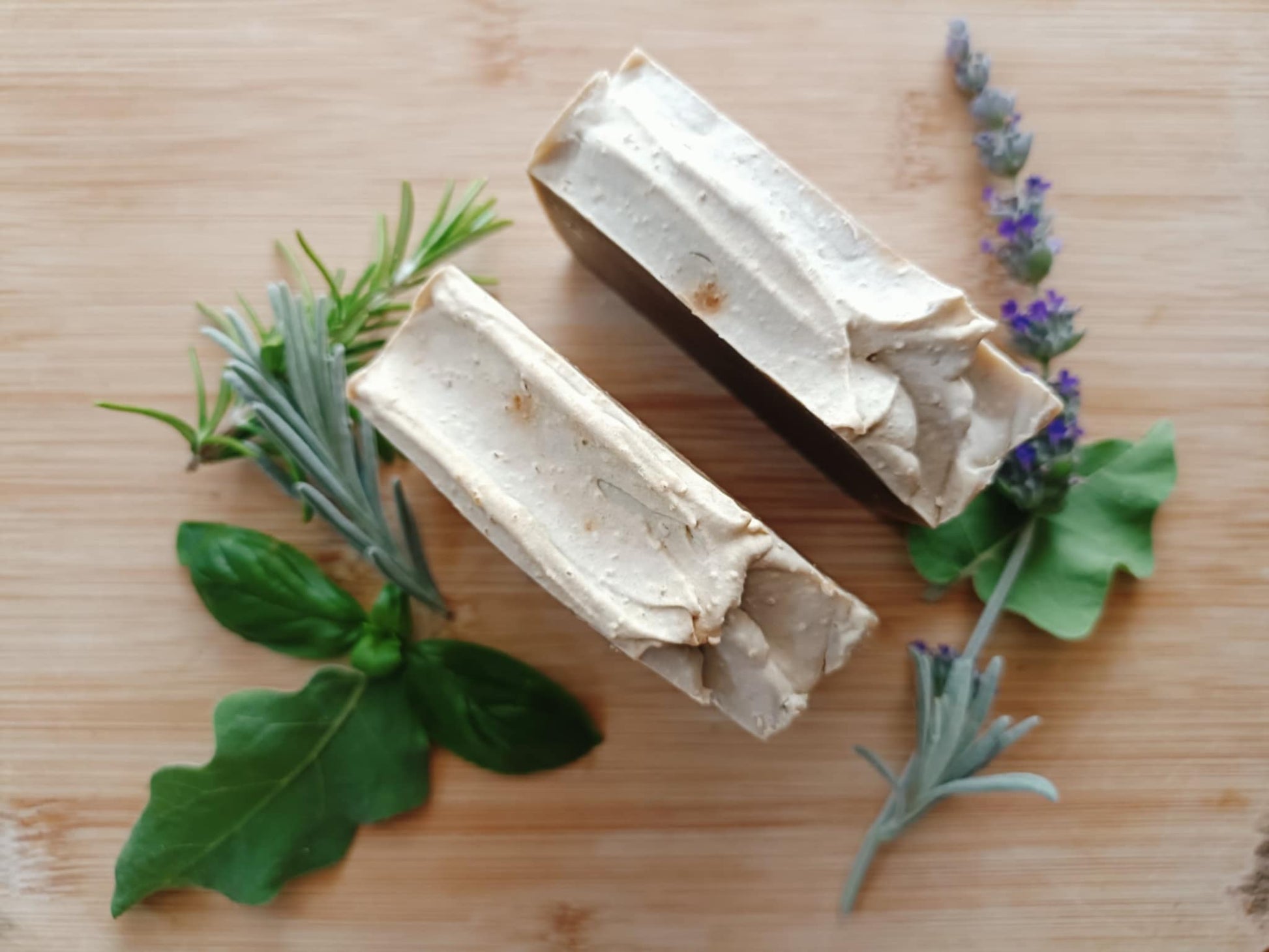 Jabón elaborado con aceites de alta calidad, 100 % natural, sin agentes espumantes ni parabenos.
